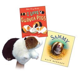 - Set includes the titles I Love Guinea Pigs and Sammy, along with plush guinea pig hand puppet